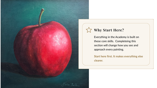 Full access to the entire Academy, including over 500 hours of real-time classical oil painting lessons.